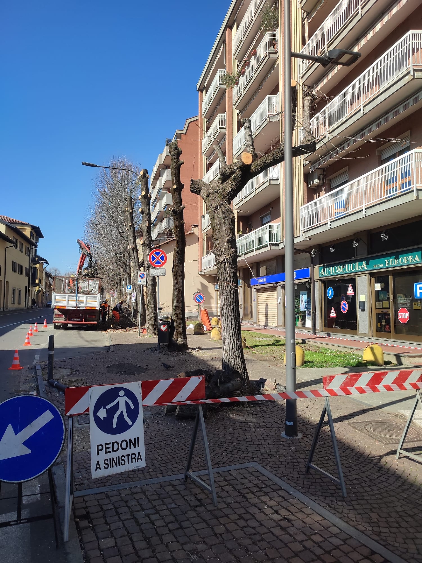 Perché a tutt'oggi, data di inizio dei lavori di abbattimento degli alberi non c'è un cartello che segnali l'abbattimento per informare passanti e residenti, ma solo qualche divieto di sosta con una spiegazione criptica che fa riferimento a dei lavori indefiniti da portare a termine?