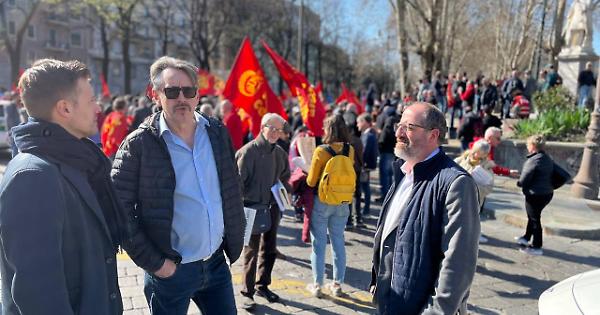 Durante la manifestazione si sono registrati anche momenti di tensione, quando alcuni attivisti del Fronte della Gioventù Comunista hanno bruciato una bandiera dell’Unione Europea e una della NATO proprio davanti all’Unione Industriali, mentre i sindacalisti parlavano dal palco. Le fiamme sono state appiccate con una torcia da segnalazione, gesto che ha attirato l’attenzione delle forze dell’ordine ma non ha avuto conseguenze immediate.