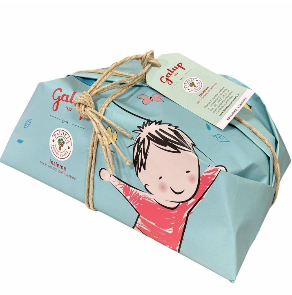 La celebre colomba tradizionale, realizzata secondo la ricetta originale con lievito madre e l’inconfondibile glassa alla nocciola tonda gentile trilobata italiana, si presenta in un incarto esclusivo firmato Fondazione Paideia. Per ogni colomba venduta nei Galup Store di Torino e Pinerolo, così come sul sito ufficiale www.galup.it, l’azienda devolverà il 10% del ricavato alla Fondazione.