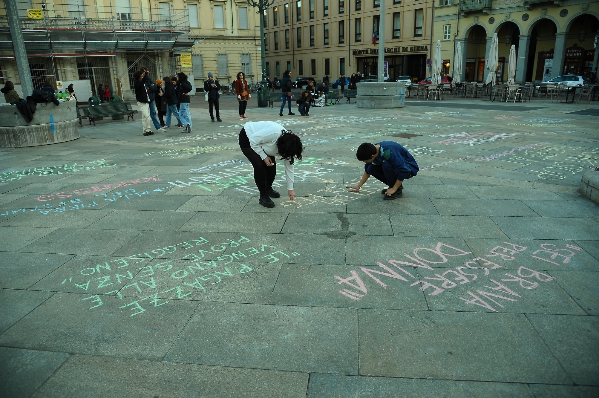 Ma il gesto simbolico resta. Il gesso resta. È un modo per dire: io c’ero. Questa frase è stata detta qui. E adesso non potete più ignorarla. Scriverla in pubblico significa strapparla al silenzio. Significa ridare controllo a chi lo ha perso. Significa fare della propria vulnerabilità una bandiera.