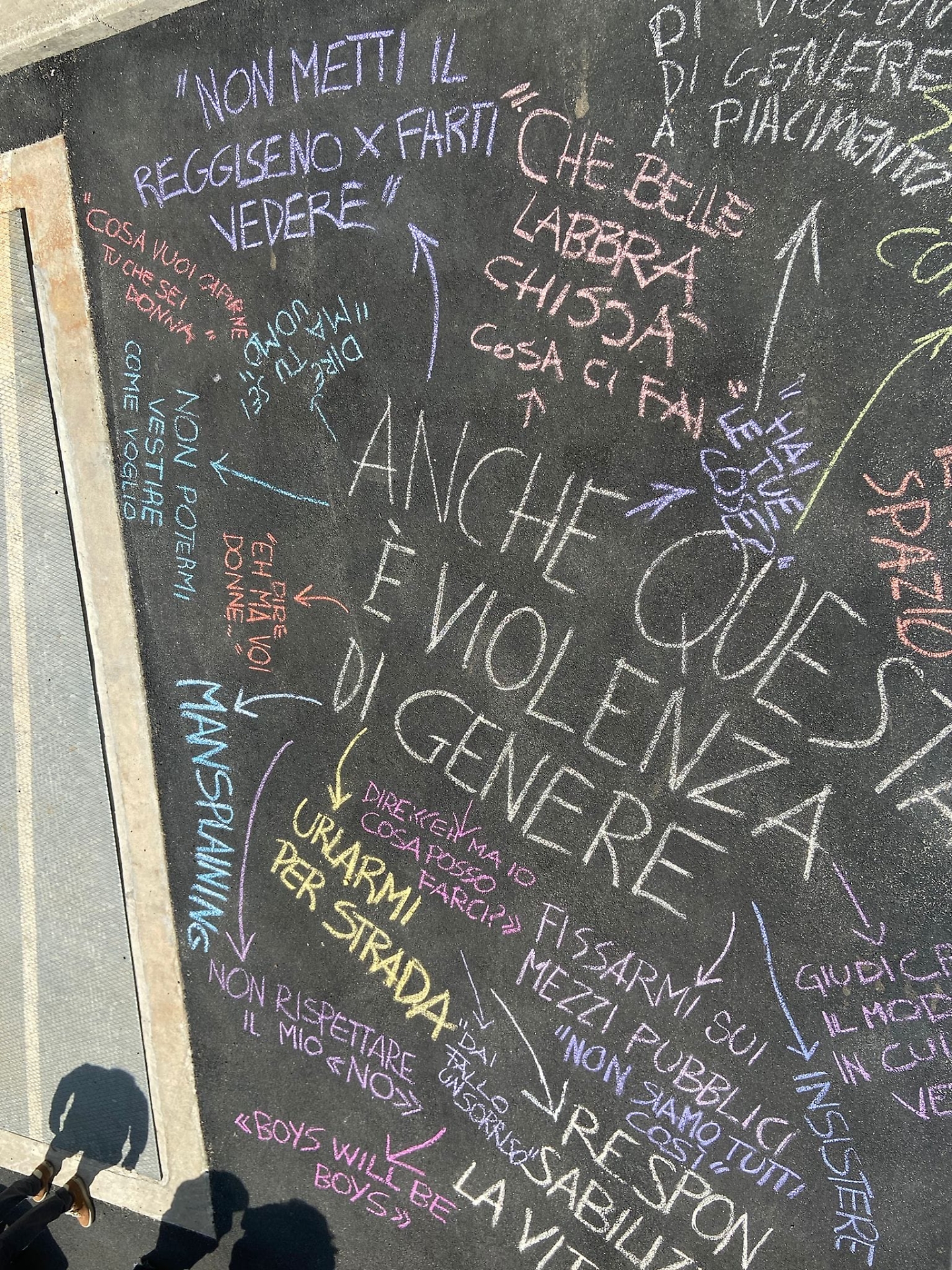Perché dietro ogni fischio, dietro ogni parola sgradita, c’è un sistema che va decostruito. E dietro ogni frase scritta sul marciapiede, c’è una persona che ha detto: adesso basta.