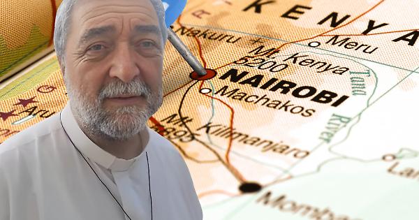 Don Toniolo con il Cardinale Repole a Nairobi, durante la visita a don Paolo Burdino, ex parroco di San Carlo Canavese