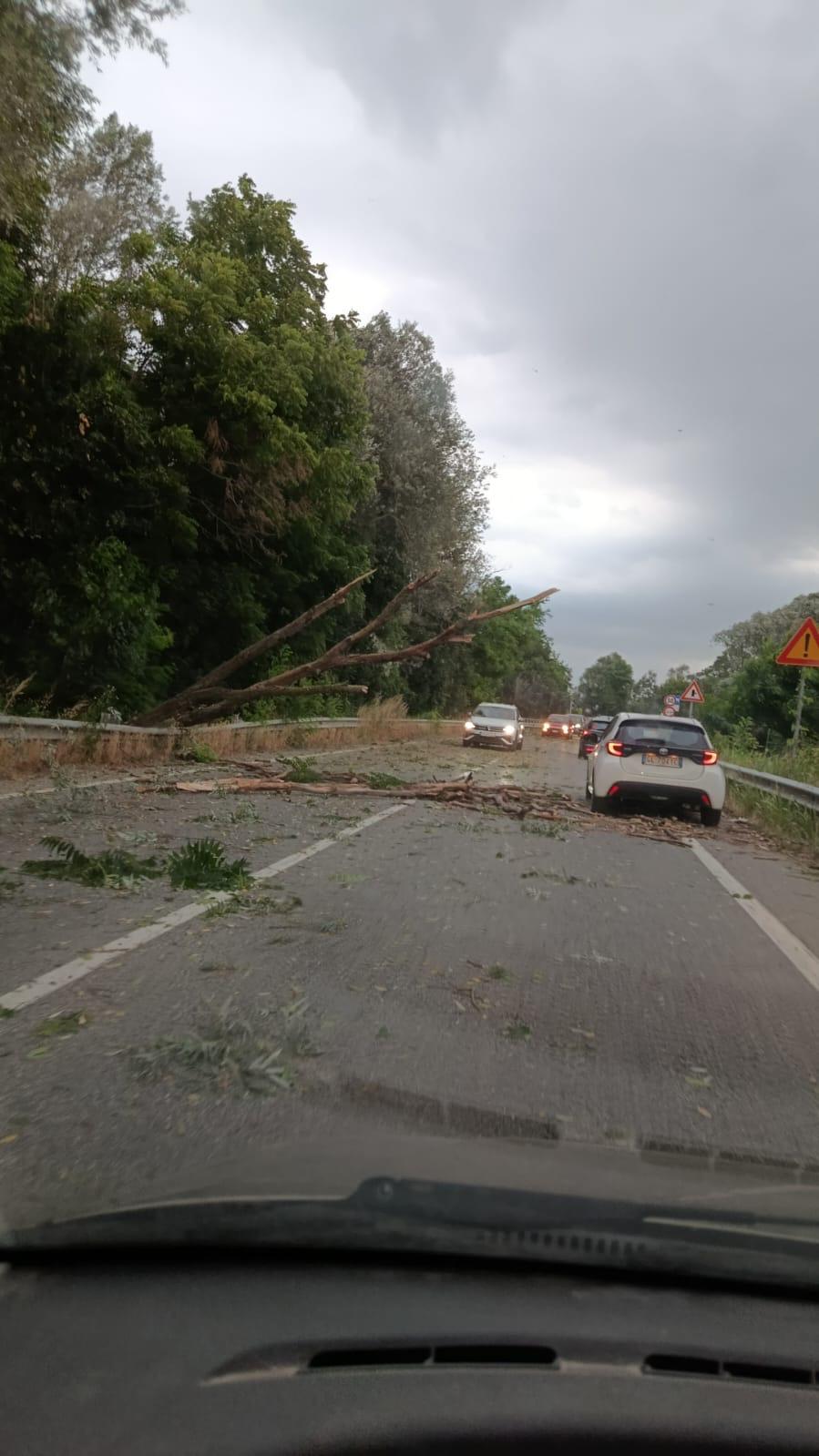 Il temporale non ha risparmiato nemmeno il Chivassese. Le strade sono un campo di battaglia. Raffiche di vento, rami ovunque, visibilità ridotta. La situazione peggiore si registra lungo la Strada Statale 590, in particolare nella zona del Delfino, tra Chivasso e Lauriano. Diversi alberi sono crollati sulla carreggiata, ostruendo la strada in direzione Lauriano. Gli automobilisti sono costretti a rallentare, alcuni sono rimasti bloccati.
