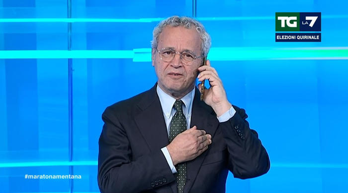 Enrico Mentana durante una delle sue maratone televisive