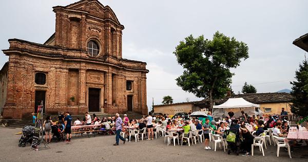 La piazza di Coassolo durante un evento organizzato dalla Proloco