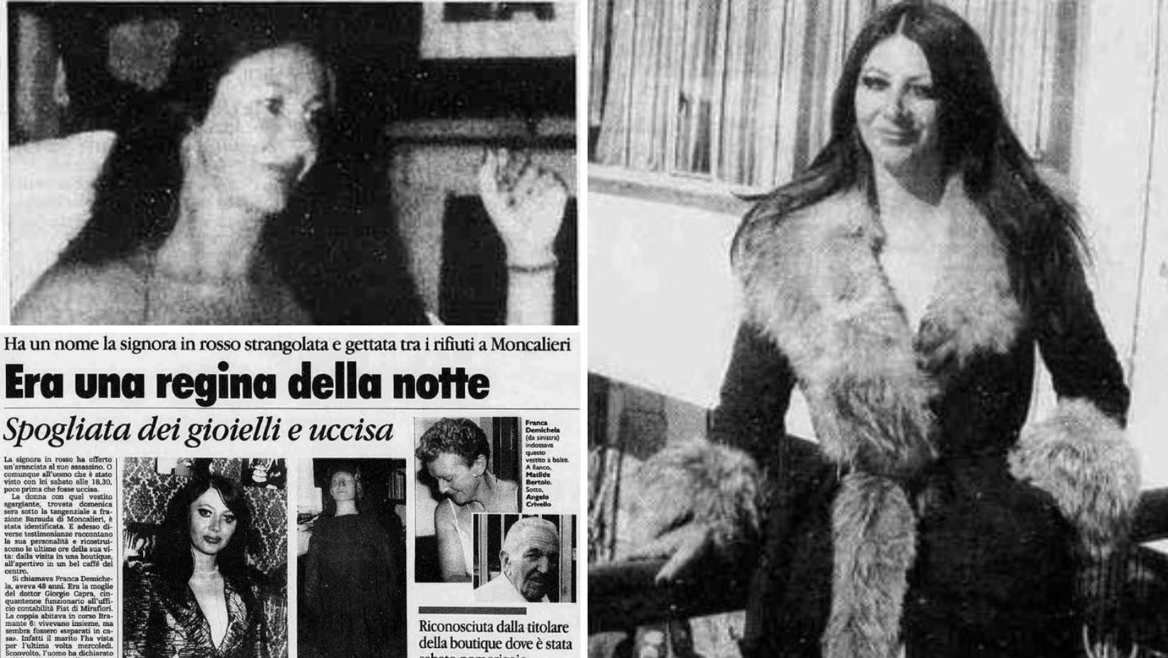 Soprannominata immediatamente “La signora in rosso” sembra quasi che la sua morte abbia finalmente autorizzato chiunque a parlare della sua vita. 48 anni, bella, sempre elegante e con i tacchi a spillo, Franca è la figlia di un dirigente della FIAT morto da poco che gli ha lasciato 2 miliardi di lire tra bot e alloggi.