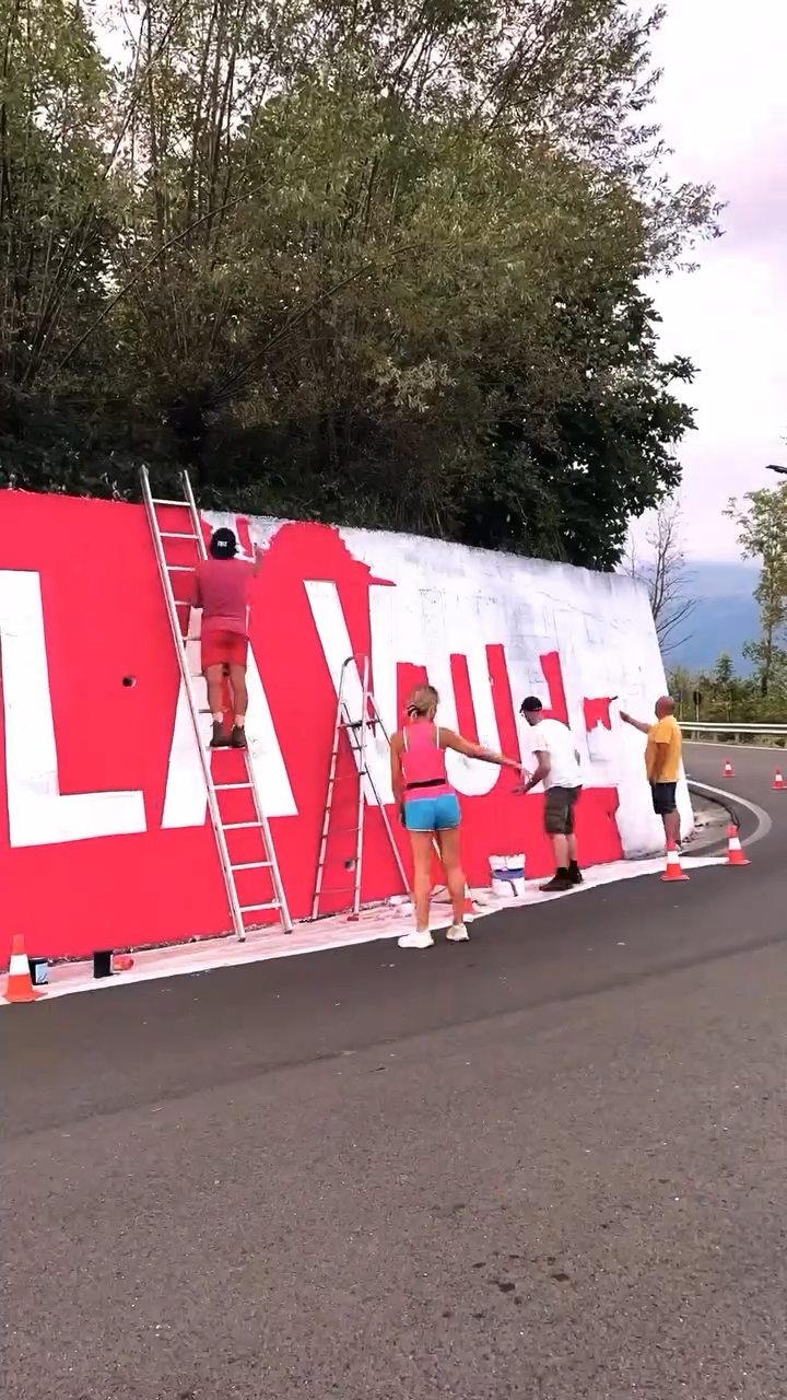 Lo ha raccontato lui stesso con un reel su Instagram, dove ha mostrato pennelli, rulli e scale all’opera, e poi ha scritto una frase che da sola racchiude tutta la forza di quel momento: “Un giorno, un murales, una Vuelta”. Non c’è nulla di più semplice e allo stesso tempo potente. Perché in quelle parole c’è la velocità di una corsa che non aspetta, l’urgenza di un’opera che nasce di getto e la consapevolezza di stare costruendo memoria collettiva. “La Vuelta passa dal Canavese e noi siamo pronti ad accoglierla così! In meno di 24 ore con pennelli, rulli e scale abbiamo dipinto più di 40 metri quadri di muro per omaggiare una delle corse più importanti del ciclismo! Un grazie enorme a chi ha dato una mano in particolare a Vladimir Chiuminatto e che ha permesso a questo murales di prendere forma”, ha aggiunto, ringraziando chi ha condiviso con lui la fatica e l’entusiasmo.