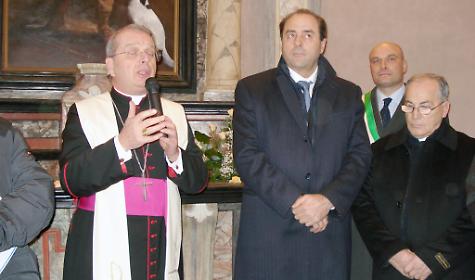 Don Gino Casardi (primo a destra) con monsignor Arrigo Miglio e Antonio Di Pietro