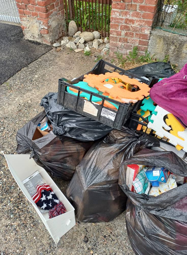 Nei giorni scorsi, accanto ai contenitori per gli abiti usati sono comparsi sacchi dell’immondizia e rifiuti di vario genere. Lo scorso weekend, in momenti diversi, tre uomini e una donna hanno scaricato nell’area un triciclo, una borsa frigo, un tappeto per bambini e scatole. Tra ieri sera e oggi pomeriggio l’episodio più eclatante: un divano blu a tre posti, “perfettamente posizionato in verticale tra i cassonetti”.
