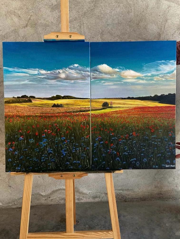 La sua è una storia di rinascita, di fedeltà a se stessa e di amore per il territorio. Nelle tele di Noemi Baro, il Canavese non è solo sfondo, ma cuore pulsante: colline e campagne diventano simboli di bellezza silenziosa, fonte inesauribile di ispirazione. Ogni pennellata porta con sé un frammento di quella terra, trasformandolo in messaggio universale di pace e autenticità. E forse è proprio questo il dono più grande della sua arte: ricordarci che, anche nel mondo frenetico e distratto in cui viviamo, c’è ancora spazio per fermarsi, respirare e lasciarsi guidare dai colori.