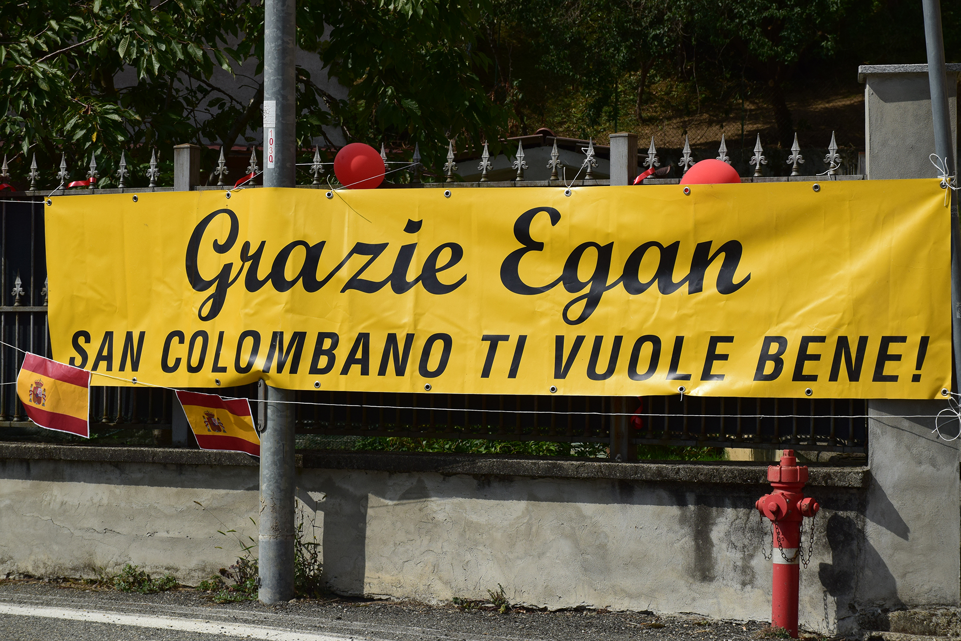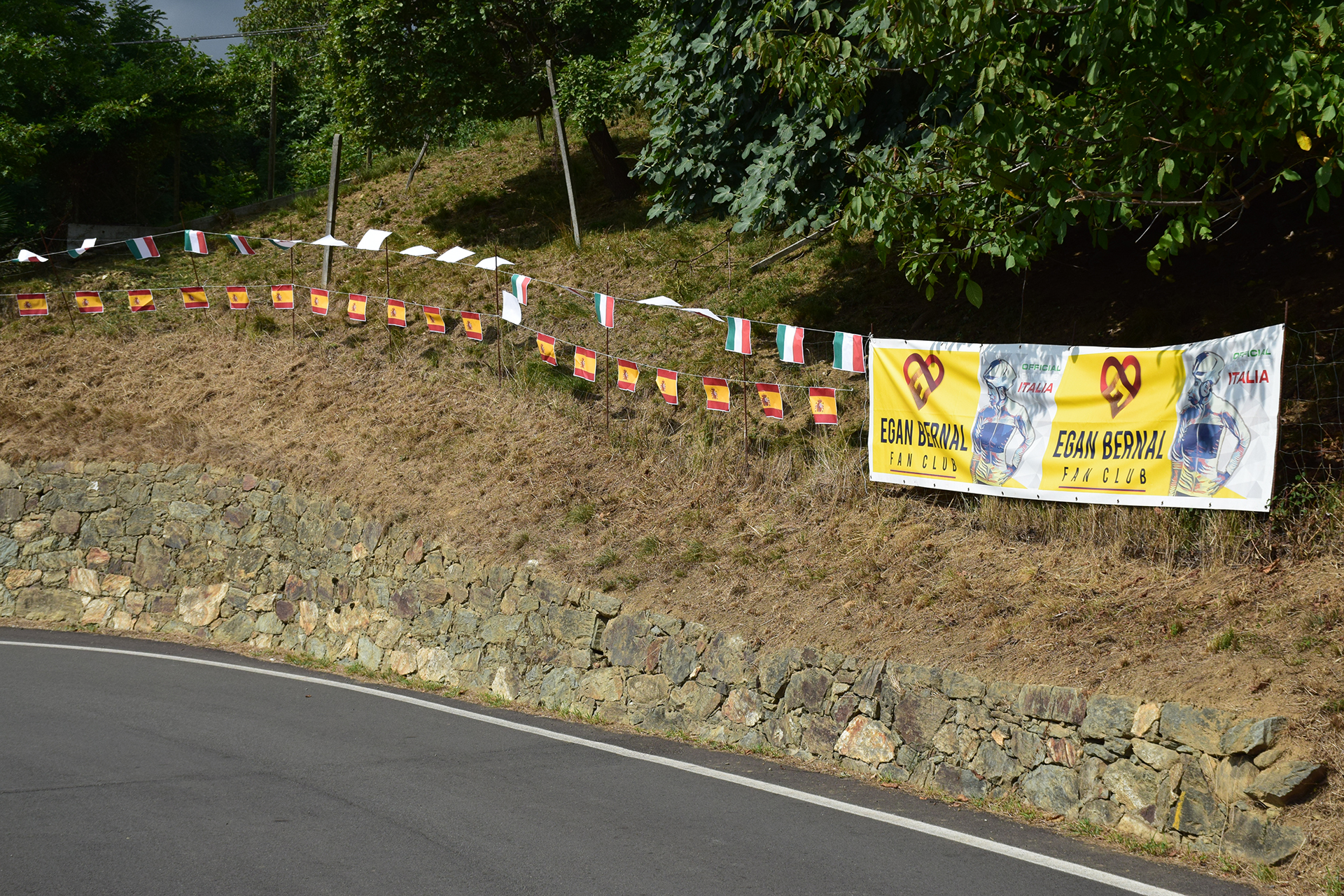 Non mancavano gli striscioni per il beniamino di casa, accolto da un entusiasmo contagioso. Il Fan Club ha tifato senza sosta per il proprio campione che, nel passaggio, ha trovato anche il tempo per un saluto ai tanti che lo attendevano: giovani, anziani e bambini, tutti uniti nell’urlo per Egan Bernal.