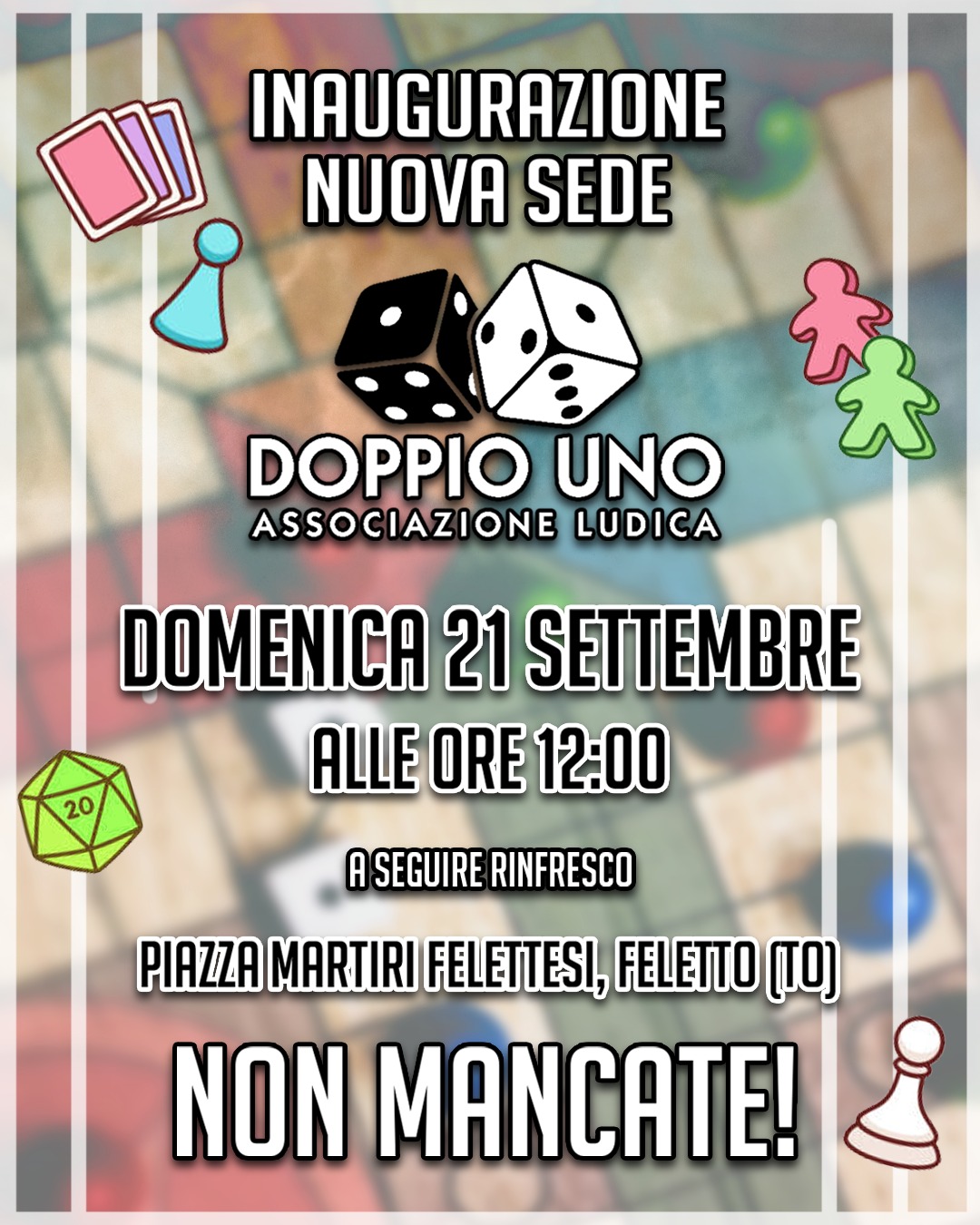 La Ludoteca Doppio Uno si prepara a scrivere un nuovo capitolo della sua storia. Domenica 21 settembre, alle ore 12, nella piazza centrale di Feletto, verrà inaugurata la nuova sede dell’associazione culturale, nata nel 2013 e divenuta in pochi anni un punto di riferimento per chi ama i giochi da tavolo, i giochi di ruolo e i wargame. Un taglio del nastro che non rappresenta solo l’apertura di un locale, ma l’avvio di un progetto più ampio: trasformare un ex edificio bancario in un centro di aggregazione dove giovani, famiglie e anziani possano incontrarsi, condividere passioni e costruire relazioni autentiche.