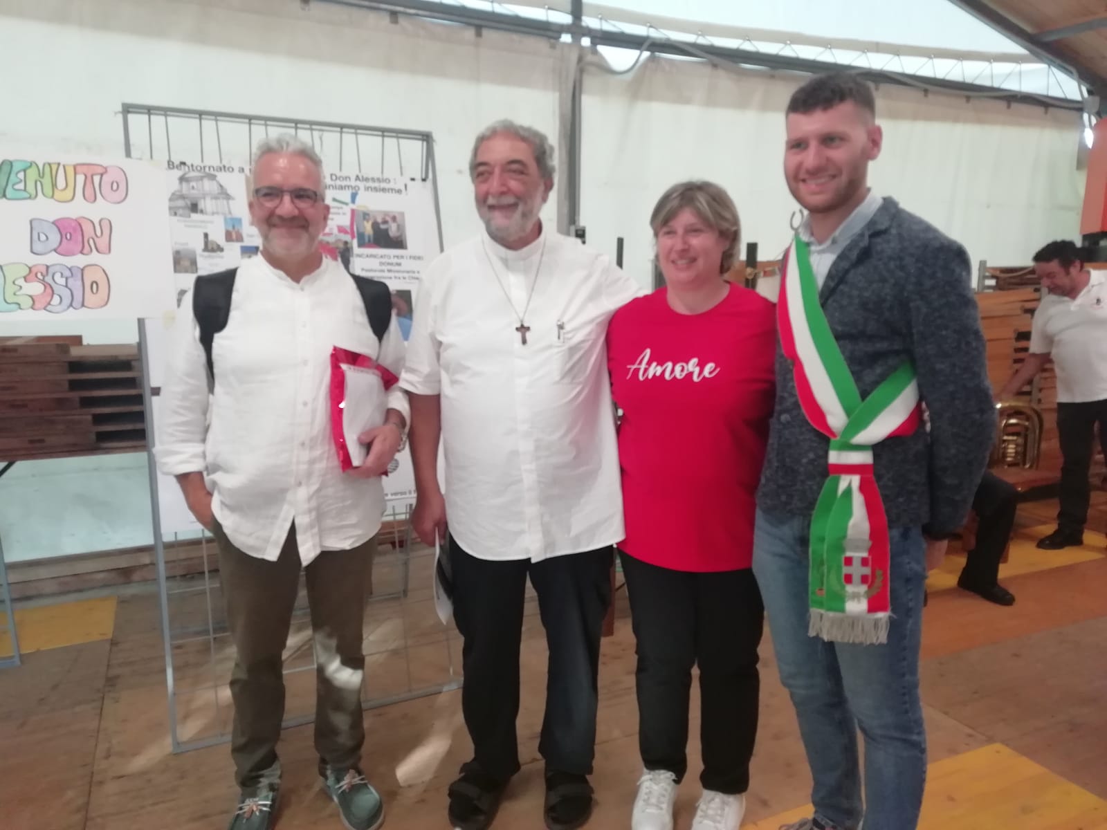 Con don Alessio parroco, contento e sorridente, guidato dalla Banda è ripartito il corteo verso il Centro Alpini, per un curato rinfresco.