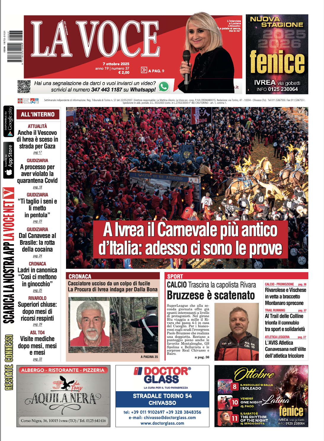 Testi e foto qui pubblicati sono proprietà de LA VOCE DEL CANAVESE tutti i diritti sono riservati. L’utilizzo dei testi e delle foto on line è, senza autorizzazione scritta, vietato (legge 633/1941).