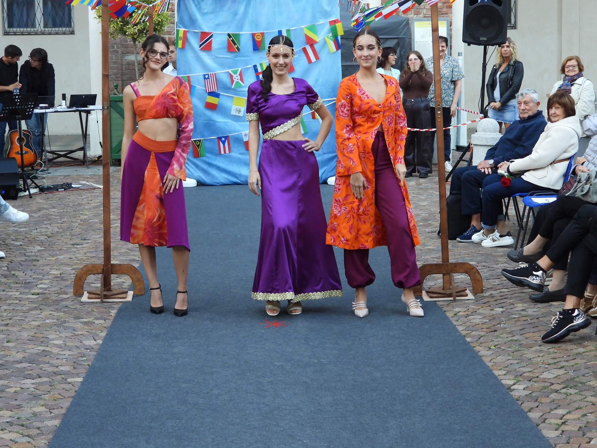 Nell’estate 2024 i suoi modelli hanno sfilato anche a Brandizzo. Poi a settembre è stata invitata alla Festa dei Nocciolini di Chivasso, dove è tornata anche quest’anno. Per quest’occasione ha ideato una collezione di 28 abiti ispirati a Italia, Spagna, New York, Texas, Cuba, Giappone, India e Grecia: un viaggio intorno al mondo su passerella. “Non volevo la solita sfilata – racconta –. Ho aggiunto piccole coreografie, volevo che fosse uno spettacolo, non solo moda”. E lo è stato. Il pubblico ha applaudito, ma Giulia guardava altrove: già pensava al prossimo bozzetto, alla prossima stoffa da trasformare.