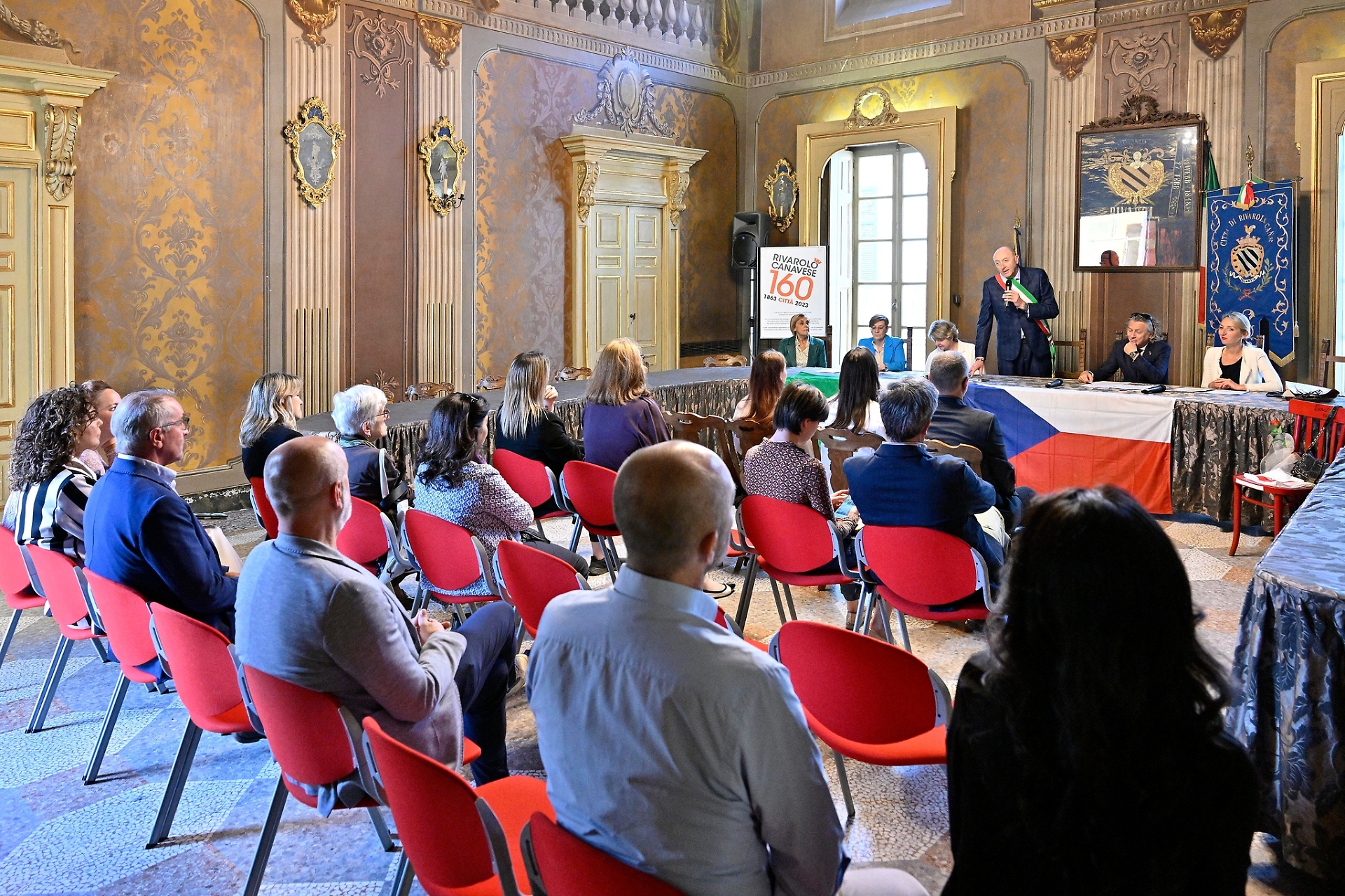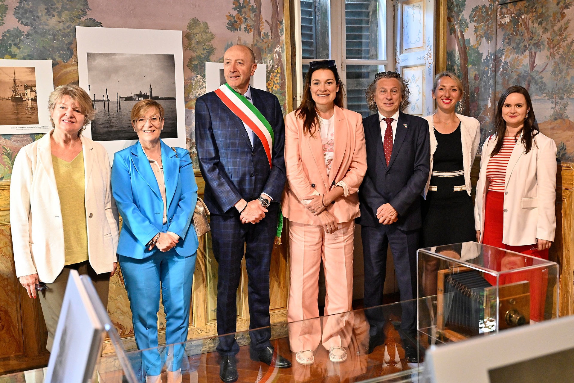 Durante l'inaugurazione della mostra " Karel Chotek. I viaggi italiani di un fotografo dal sangue blu" a cura di Jan Vaca e Jiri Preclick, organizzata da Karin Reisova, presidente dell'Associazione Areacreativa42, e il Centro Ceco Milano, da sinistra a destra: Ivana Zandona, viceconsole generale della Repubblica Ceca, Marina Vittone, vicesindaco di Rivarolo, Martino Zucco Chinà, sindaco di Rivarolo, Alena Seredova, imprenditrice e attrice ceca, Robert Mikolas,direttore Centro Ceco di Milano, Elisabetta Chiono, figlia di Reisova, Andrea Fiavolà, cordinatrice del programma del Centro Ceco Milano.