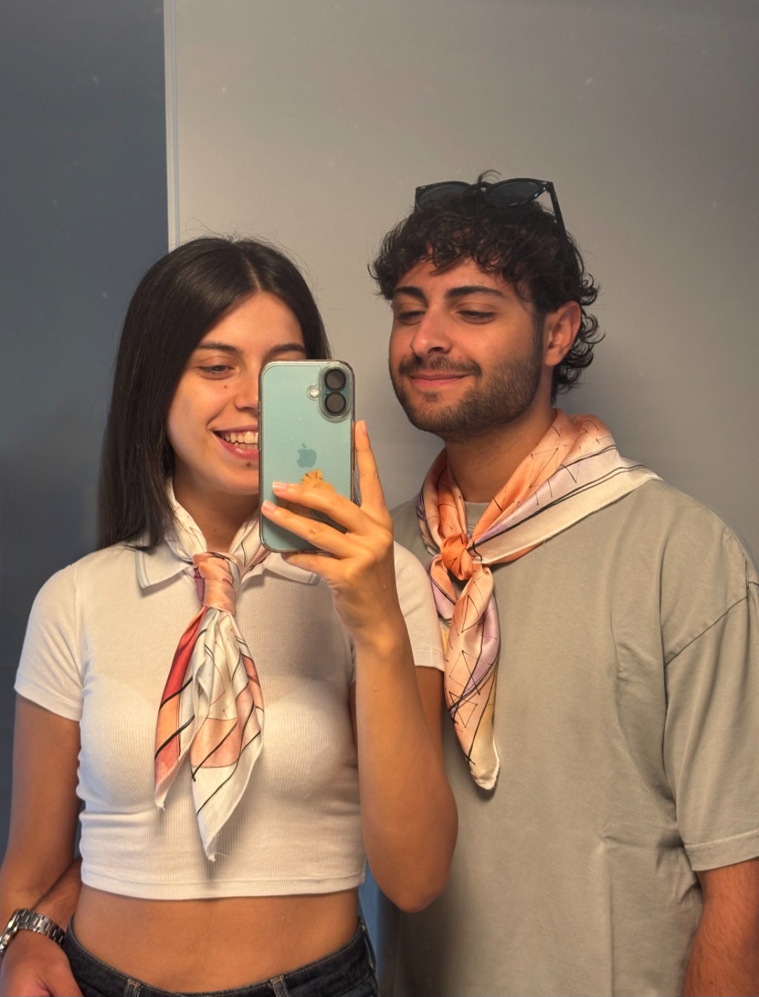 Ma per Alessia la teoria non basta: il sogno doveva prendere forma. Così ha iniziato a disegnare, studiare, cercare tessuti, affidarsi a mani italiane per la produzione. Ha deciso di puntare tutto su questo semplice “pezzo di stoffa”, che nonostante la sua forma basica permette di sviluppare la creatività a 360 gradi.