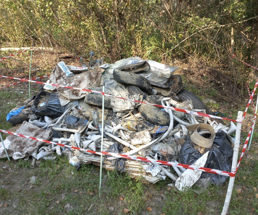 Uno dei tanti cumuli di rifiuti raccolti dagli Amici della Dora Baltea lungo le sponde del fiume: plastica, tubi e materiali di scarto abbandonati nella natura e riportati alla luce dal lavoro dei volontari.