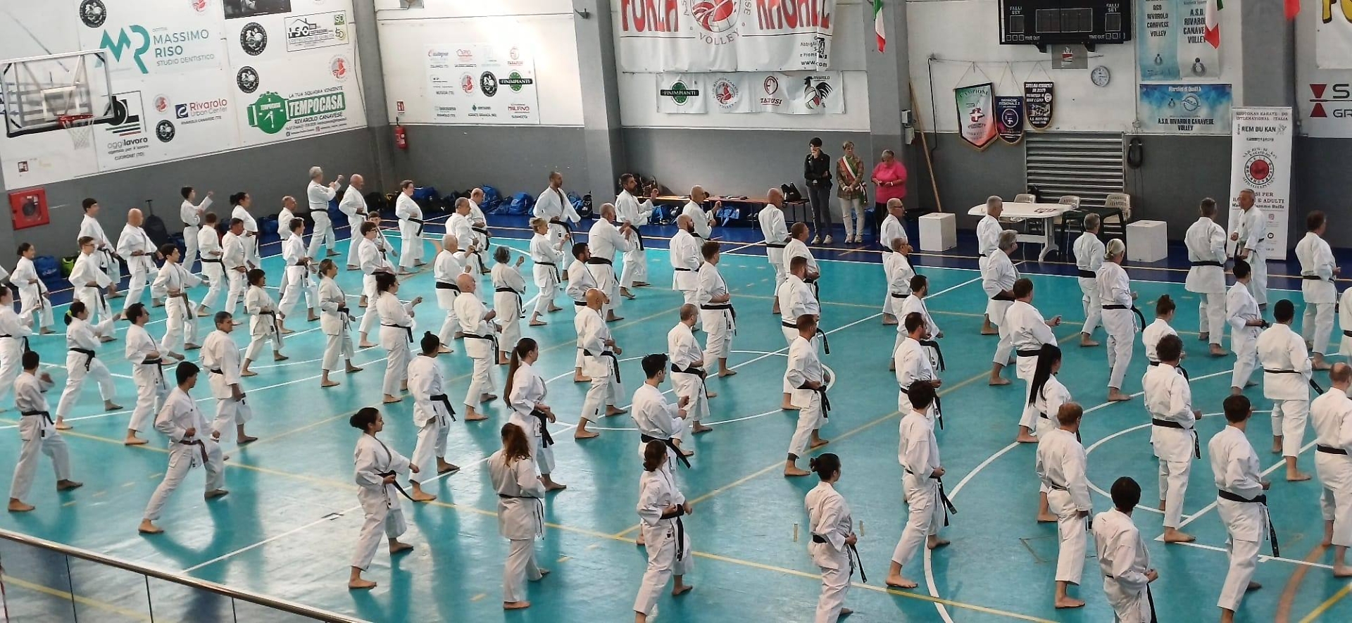 L’evento ha richiamato oltre cento karateka provenienti da tutto il Piemonte, riuniti per un appuntamento di formazione e crescita tecnica che ha trasformato il palazzetto di Rivarolo in un grande dojo. La giornata è iniziata con una sessione riservata ai capi palestra regionali, un momento di studio e confronto diretto con il Maestro Miura, che ha approfondito i principi del kata e del kumite, cuore tecnico e spirituale dello stile Shotokan. Successivamente la lezione si è aperta alle cinture marroni e nere, offrendo ai partecipanti l’occasione di allenarsi sotto la guida di un punto di riferimento internazionale.