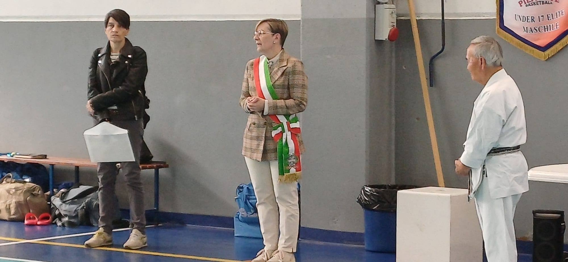 A portare il saluto della città sono intervenute il vicesindaco Marina Vittone e la consigliera delegata agli eventi sportivi e alle Politiche giovanili Francesca Bevacqua, che hanno consegnato al Maestro Miura una pergamena di riconoscimento a nome dell’amministrazione comunale, come segno di gratitudine per la sua presenza e per l’impegno costante nella diffusione dei valori educativi del karate.