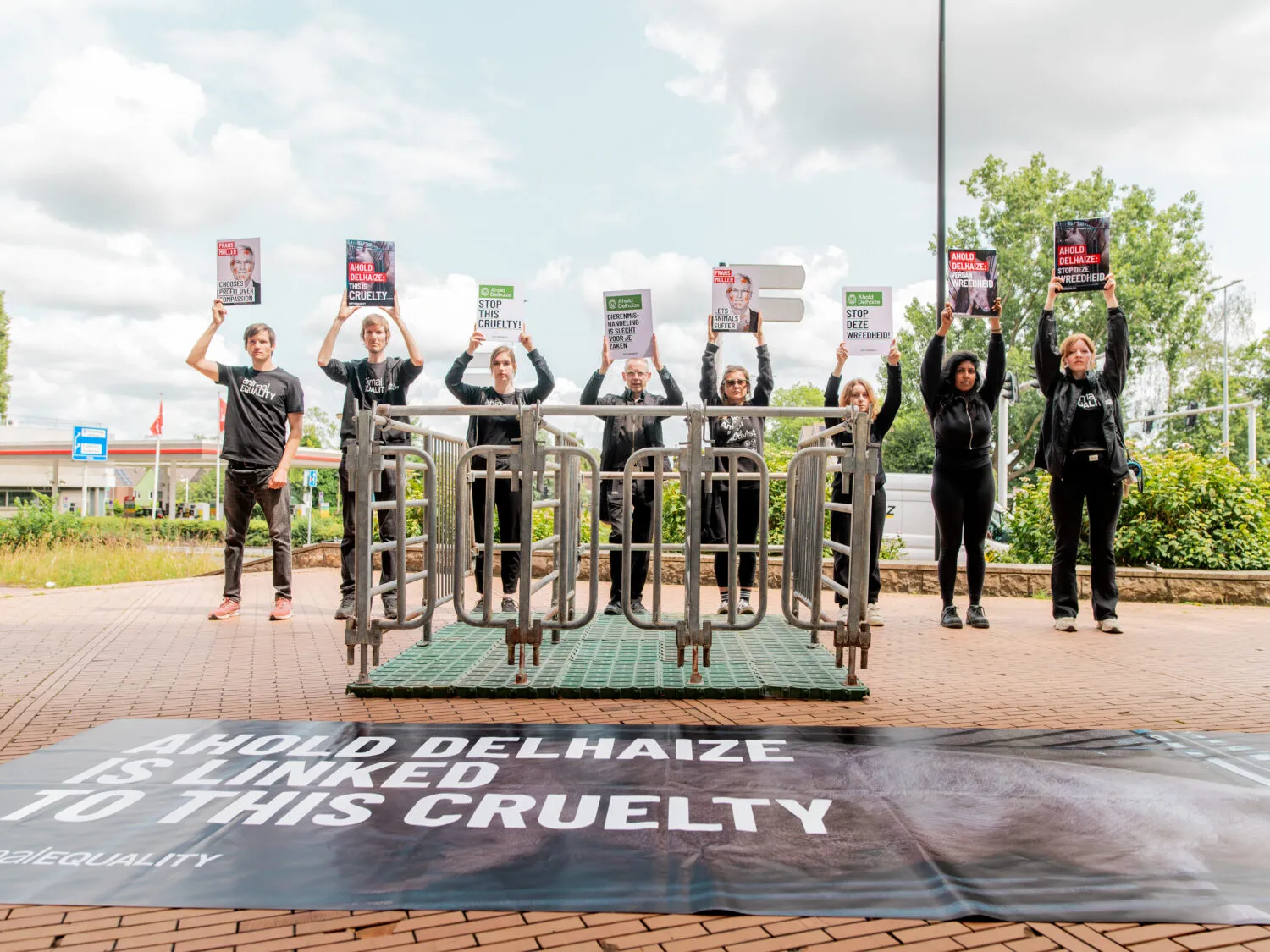 Sono ormai sei settimane che gli attivisti di Animal Equality protestano quotidianamente davanti agli uffici della multinazionale nei Paesi Bassi, chiedendo un impegno concreto e verificabile per porre fine all’uso delle gabbie negli allevamenti della filiera Ahold Delhaize. Le manifestazioni hanno interessato anche altre sedi legate al gruppo e al suo management, nel tentativo di spingere le istituzioni olandesi a intervenire pubblicamente.