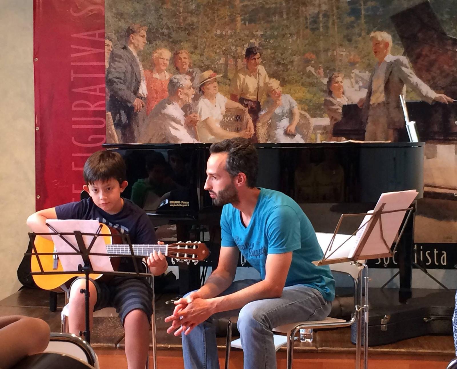 Pietro da piccolo, a lezione di chitarra