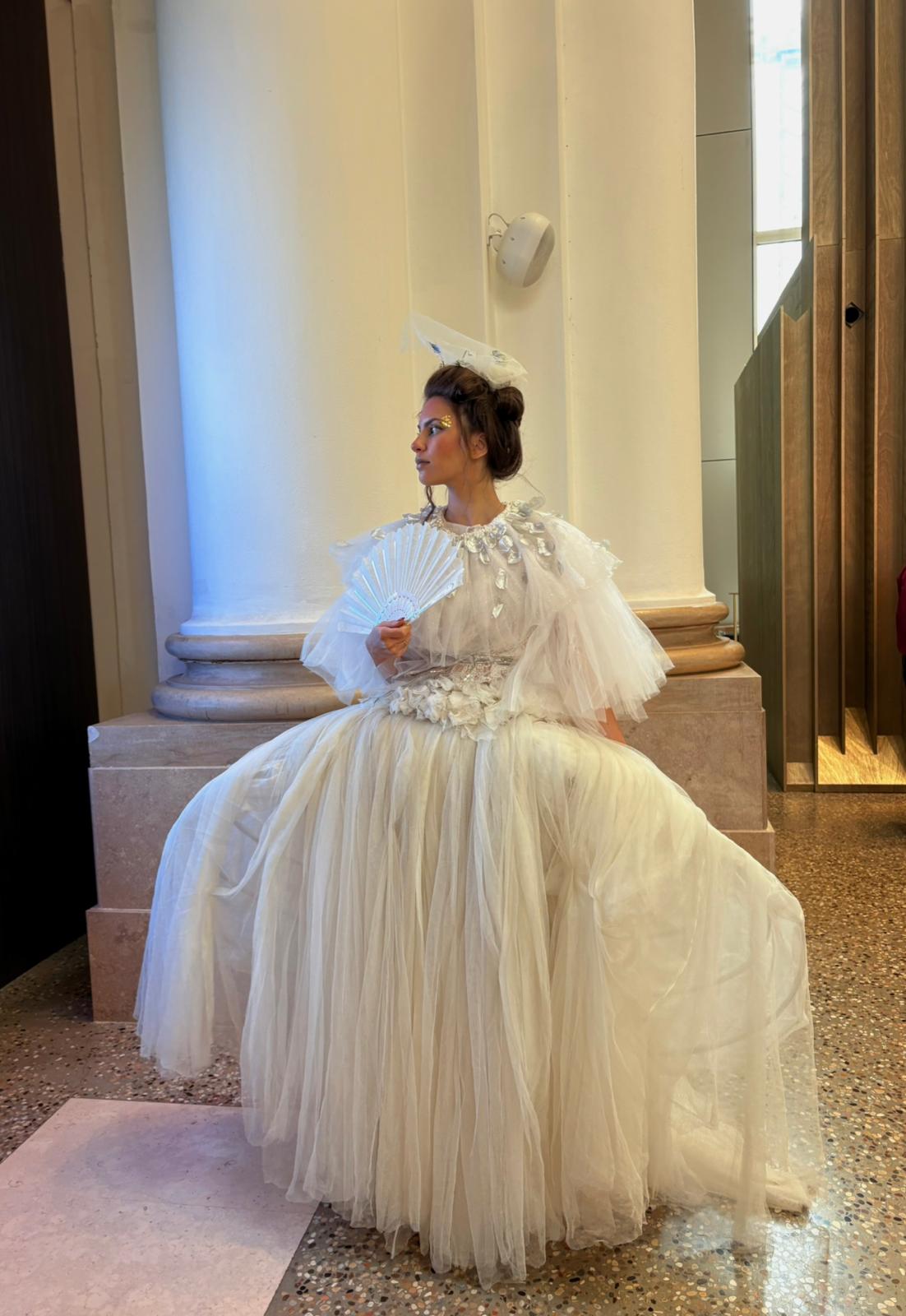 "Lo stilista per cui ho sfilato è Diamond Luisant. Il suo è un teatro-moda: unisce la moda al palcoscenico. I suoi abiti raccontano storie e chi li indossa recita, interpreta.” spiega Martina.