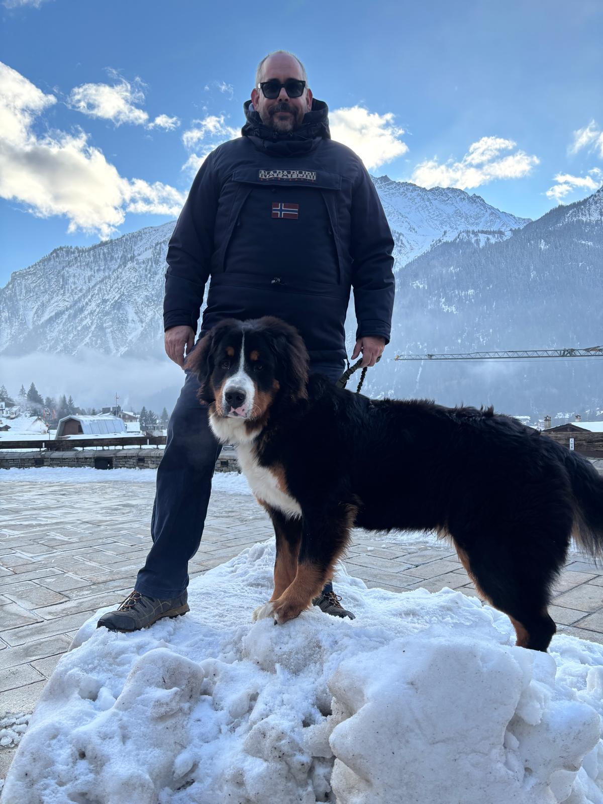 Matteo Maino con Bernie, il suo Bovaro del Bernese di 1 anno e 8 mesi