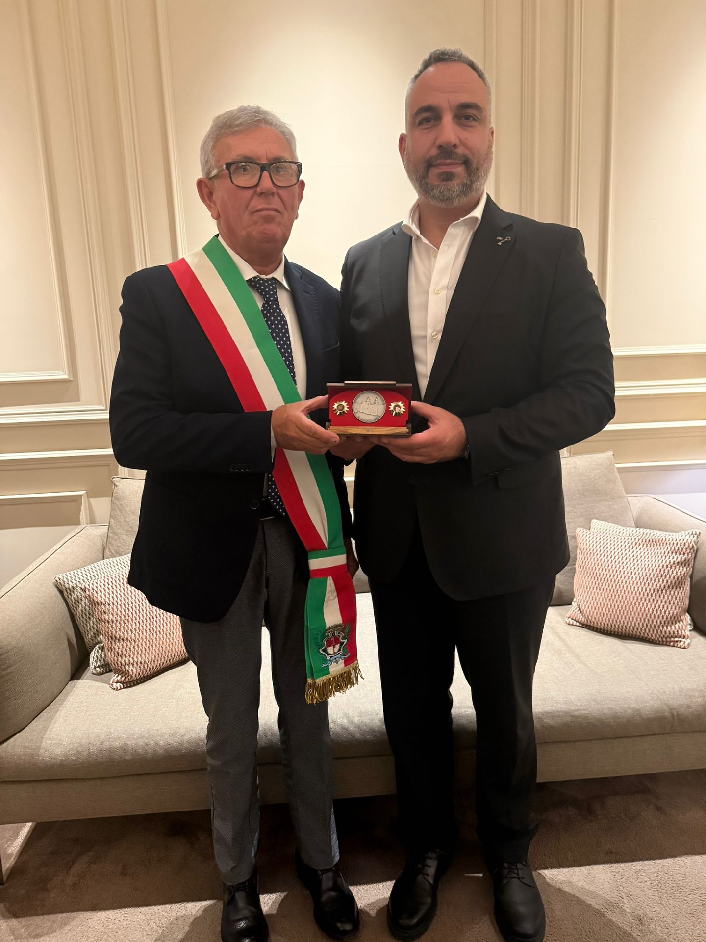 Il sindaco, si legge nella nota, ha donato al collega di Betlemme un medaglione con lo stemma della città, ricevendone in cambio due reperti dalla Basilica della Natività.