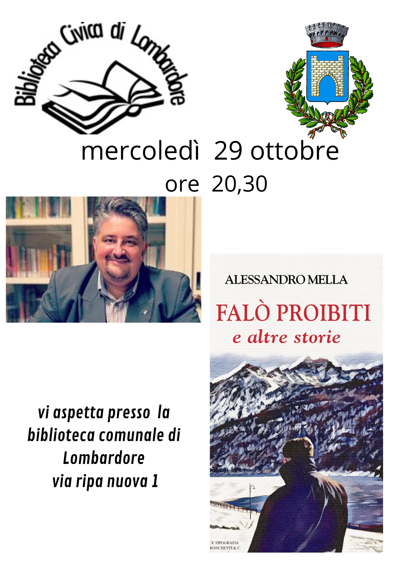 A chiudere la rassegna di ottobre, il pubblico dei Caffè Culturali potrà ritrovare Alessandro Mella anche in veste di autore, con la presentazione della sua nuova antologia “I Falò proibiti e altre storie”, pubblicata dall’editore Baima Ronchetti di Castellamonte. Il volume raccoglie una serie di racconti che si muovono tra storia e montagna, malattia e speranza, sogni e sentimento, componendo un mosaico umano e letterario di grande intensità.