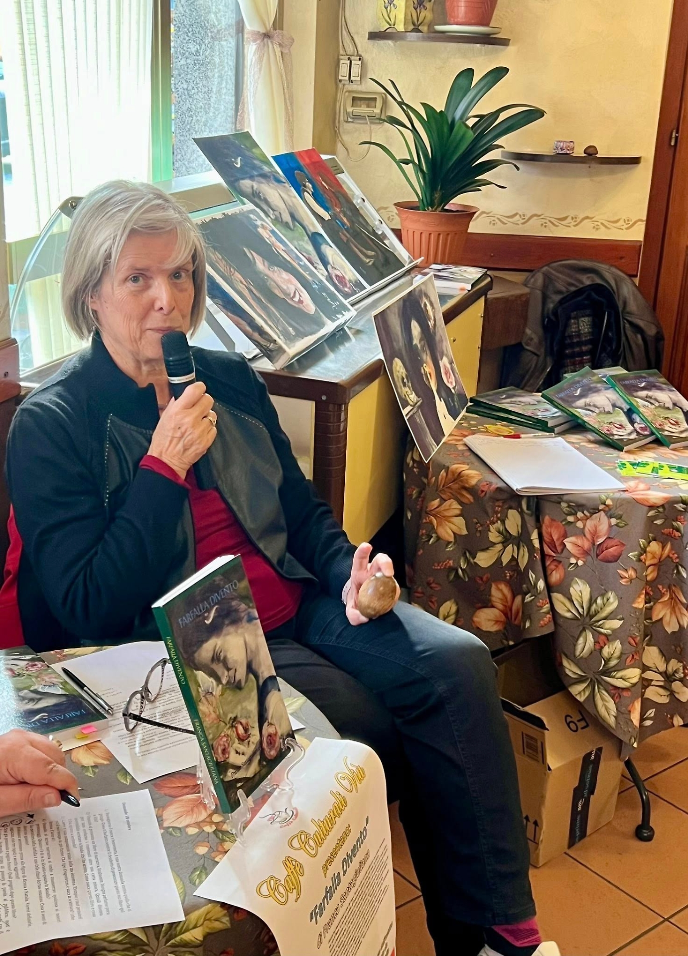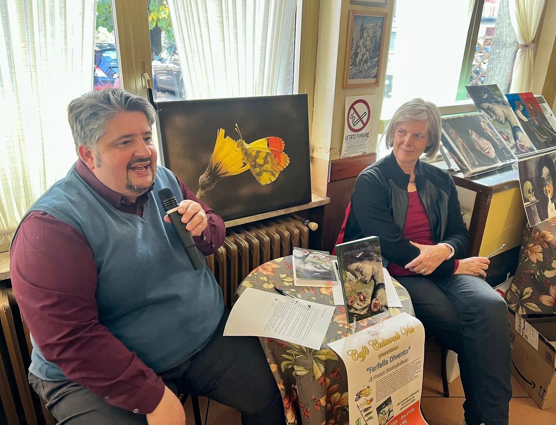 Un pomeriggio di parole, introspezione e metamorfosi. Sabato 18 ottobre, nella calda atmosfera del Caffè Rocciamelone di Viù, è tornato l’appuntamento con i Caffè Culturali, la storica rassegna letteraria che da anni offre al pubblico della Valle di Lanzo uno spazio di dialogo con gli autori. Protagonista dell’incontro è stata Franca Santagiuliana, che ha presentato il suo romanzo “Farfalla divento”, un’opera che intreccia il destino di due donne molto diverse, unite da un cammino di crescita e trasformazione.