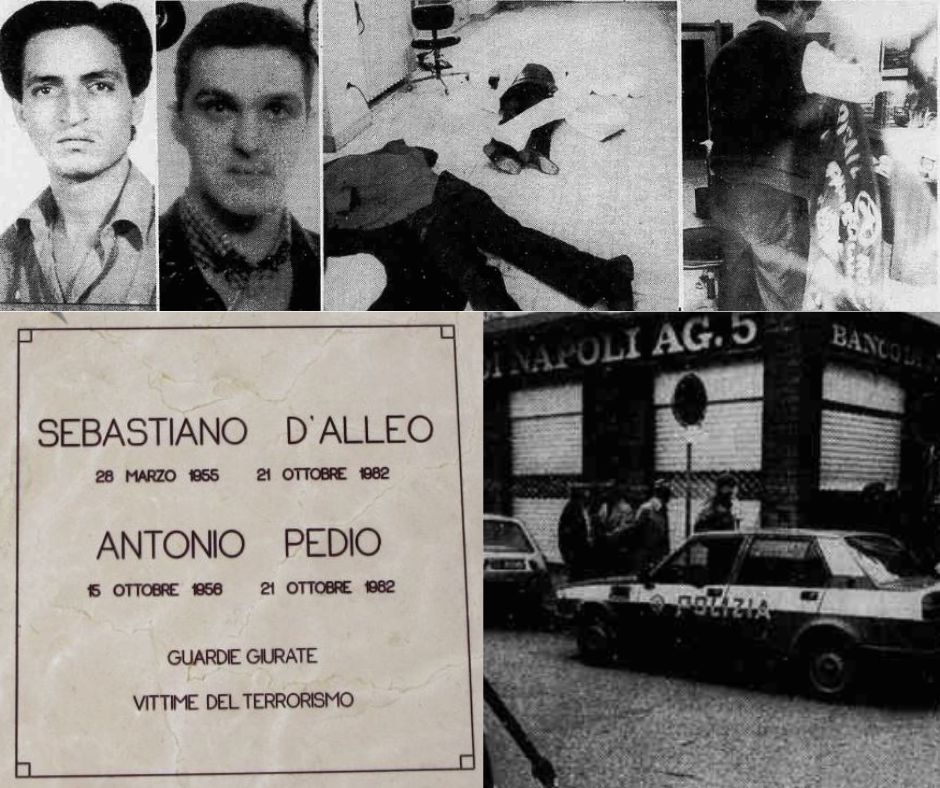 Il 21 ottobre le vetture arrivano all’angolo tra via Rosolino Pilo e via Domodossola. Lì si trova la filiale n.5 del Banco di Napoli e a presidiarla ci sono i “Mondialpol” Sebastiano D’Alleo e Antonio Pedio. Vedono due ragazzi e due ragazze arrivare dalla strada ma non sospettano nulla: sono giovani, ben vestiti, sorridenti. Entrano in banca e chiedono del direttore, vogliono aprire un conto. Si intrattengono per circa dieci minuti e poi escono fuori.