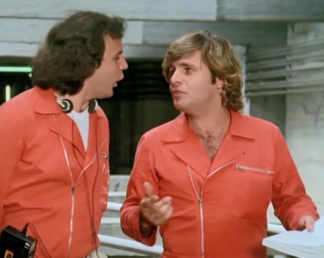Mauro di Francesco (a destra) sul set con Jerry Calà