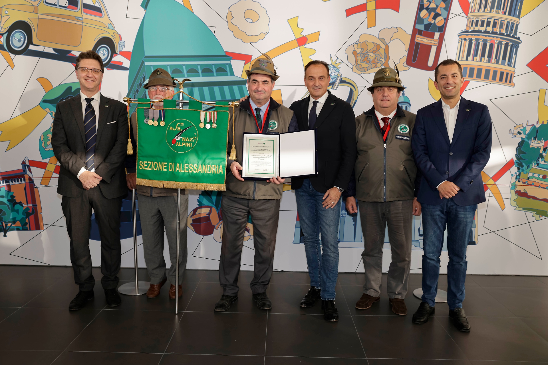 Il riconoscimento, conferito alle sezioni di Acqui Terme, Alessandria, Asti, Biella, Casale Monferrato, Ceva, Cuneo, Domodossola, Intra, Ivrea, Mondovì, Novara, Omegna, Pinerolo, Saluzzo, Torino, Valsesiana, Valsusa e Vercelli, premia il ruolo determinante degli Alpini nella difesa dell’ambiente e nella sicurezza dei cittadini.