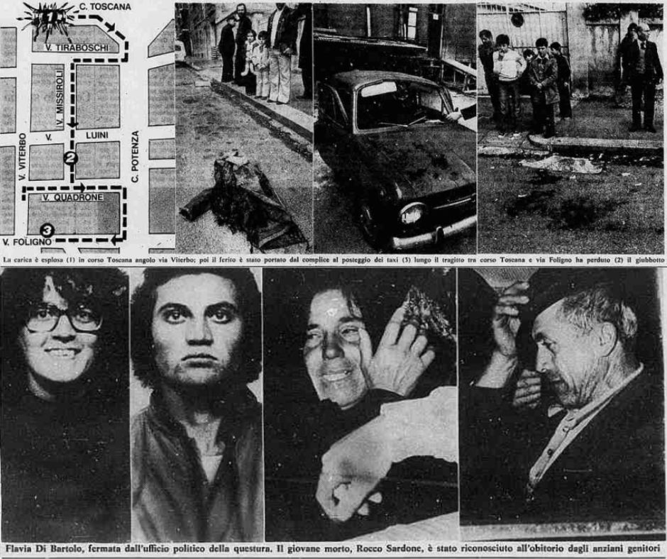 Sono circa le 2 e il ventiduenne si trova a bordo di Fiat 850 di un’amica insieme al fratello Nicola. Si stanno dirigendo verso una concessionaria Volkswagen che si trova in via Pianezza 230, quando, in corso Toscana, la bomba che si stanno portando dietro esplode.