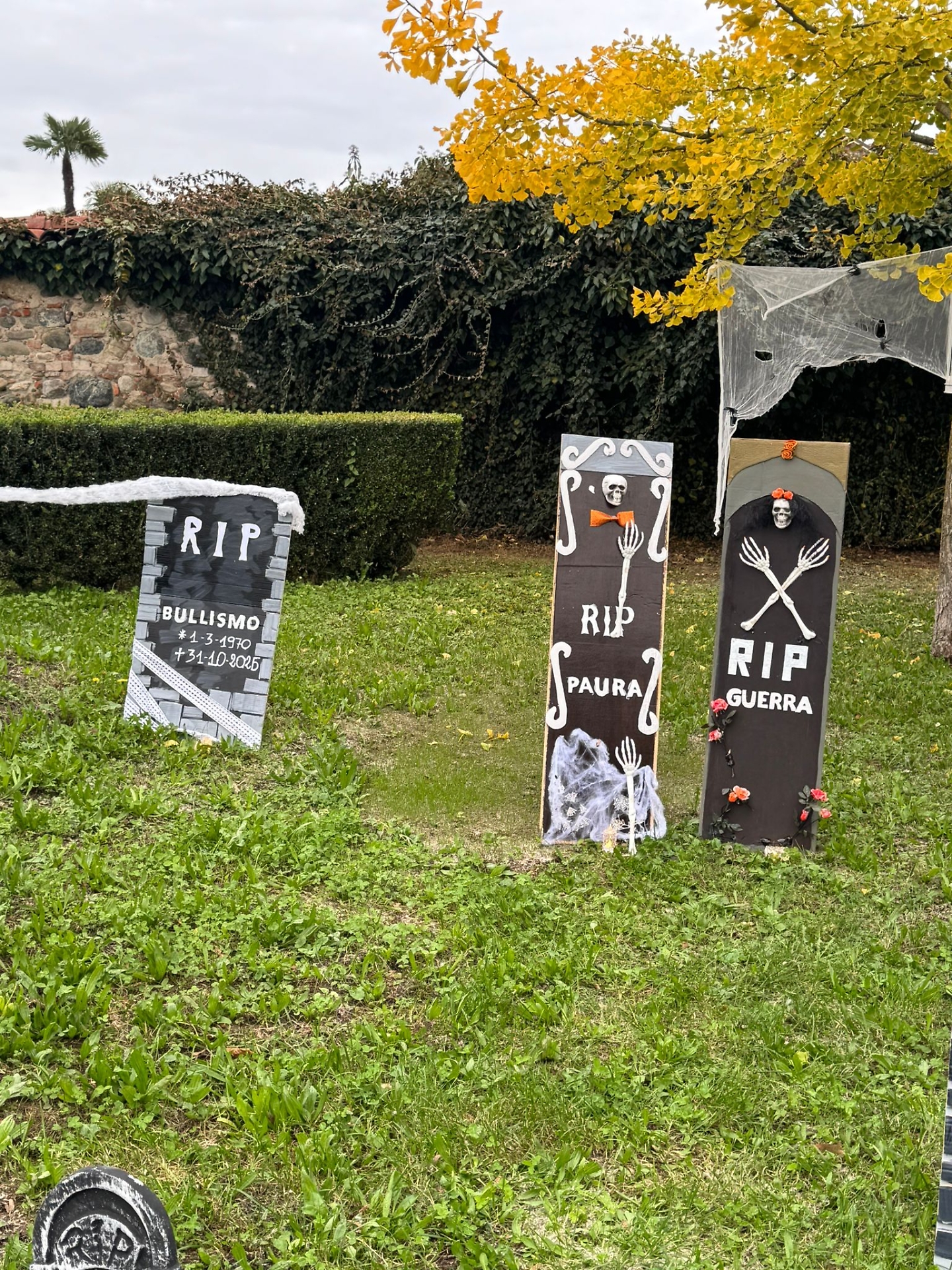 Tra i tanti allestimenti spiccava un angolo più riflessivo: un “cimitero simbolico” dove su ogni lapide non c’erano nomi di persone, ma parole da sconfiggere: la paura, la guerra, il bullismo, l’odio. Un’idea carica di simbolismo che ha aggiunto un tocco di significato alla festa, ricordando che anche nei momenti di gioco c'è spazio per la riflessione.