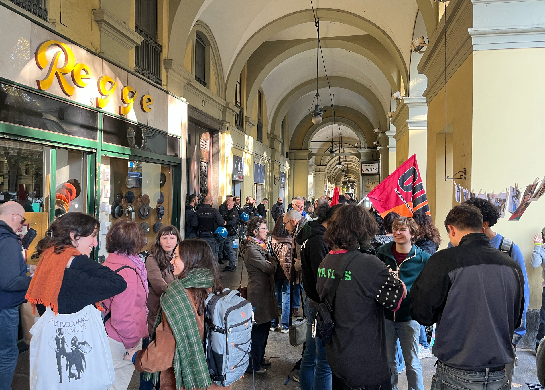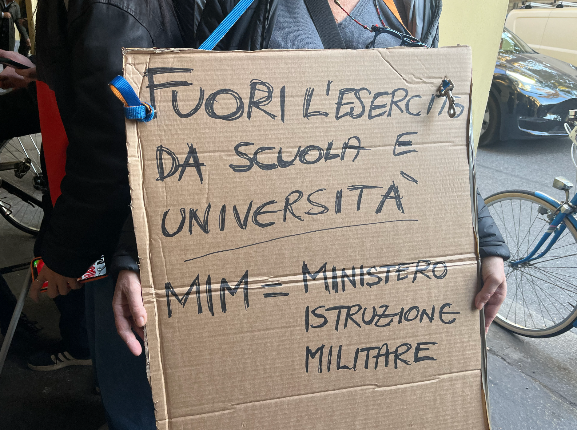 In attesa dell’esito dell’incontro, davanti al civico 70, sbarrato da un cordone di polizia, si sono susseguiti una serie di interventi che hanno ricollegato la censura del convegno ad altri temi che alimentano il dibattito pubblico: dalla questione del riarmo in Europa, al genocidio in Palestina, alla crescente introduzione di argomenti e azioni legati all’ambito militare all’interno degli spazi educativi.
