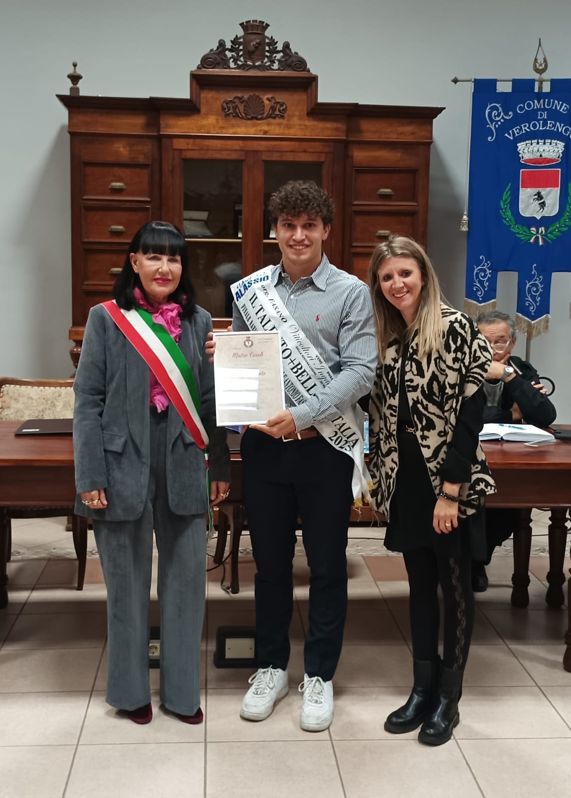 Matteo Casale, per il 1° posto al concorso “Il Talento più bello d’Italia”, 47ª edizione del concorso nazionale di bellezza maschile svoltosi ad Alassio. Un momento emozionante che ha unito sport, arte e orgoglio locale, dimostrando come i giovani di Verolengo siano capaci di eccellere e di rappresentare con onore la loro comunità.