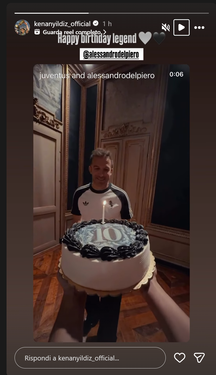 Tra i messaggi arrivati da tutto il mondo bianconero spicca quello del giovane talento Kenan Yildiz, che su Instagram ha scritto: «Buon compleanno, leggenda», aggiungendo un video con la torta condiviso dal profilo ufficiale della società. Un piccolo gesto che mostra quanto l’eredità di Del Piero continui a ispirare anche le nuove generazioni juventine.