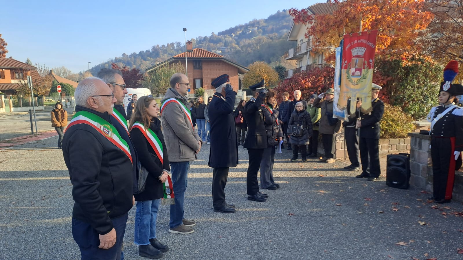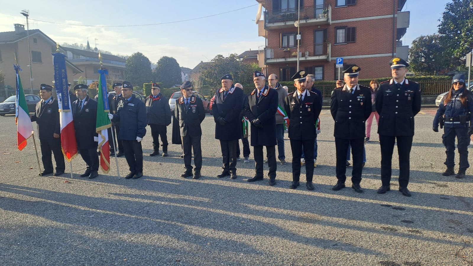 A rendere omaggio ai Caduti erano presenti il Comandante della Compagnia Carabinieri di Chivasso, Capitano Urbano Marrese, e il Comandante della Stazione di Castiglione Torinese, Maresciallo Maggiore Davide Martoscia, insieme all’Ispettore Regionale dell’Associazione Nazionale Carabinieri, Generale Marcello Bergamini. Accanto a loro, in rappresentanza dell’Arma in congedo, le Sezioni A.N.C. di Castiglione Torinese, Settimo Torinese, Caluso e Verolengo, con i rispettivi presidenti e labari.