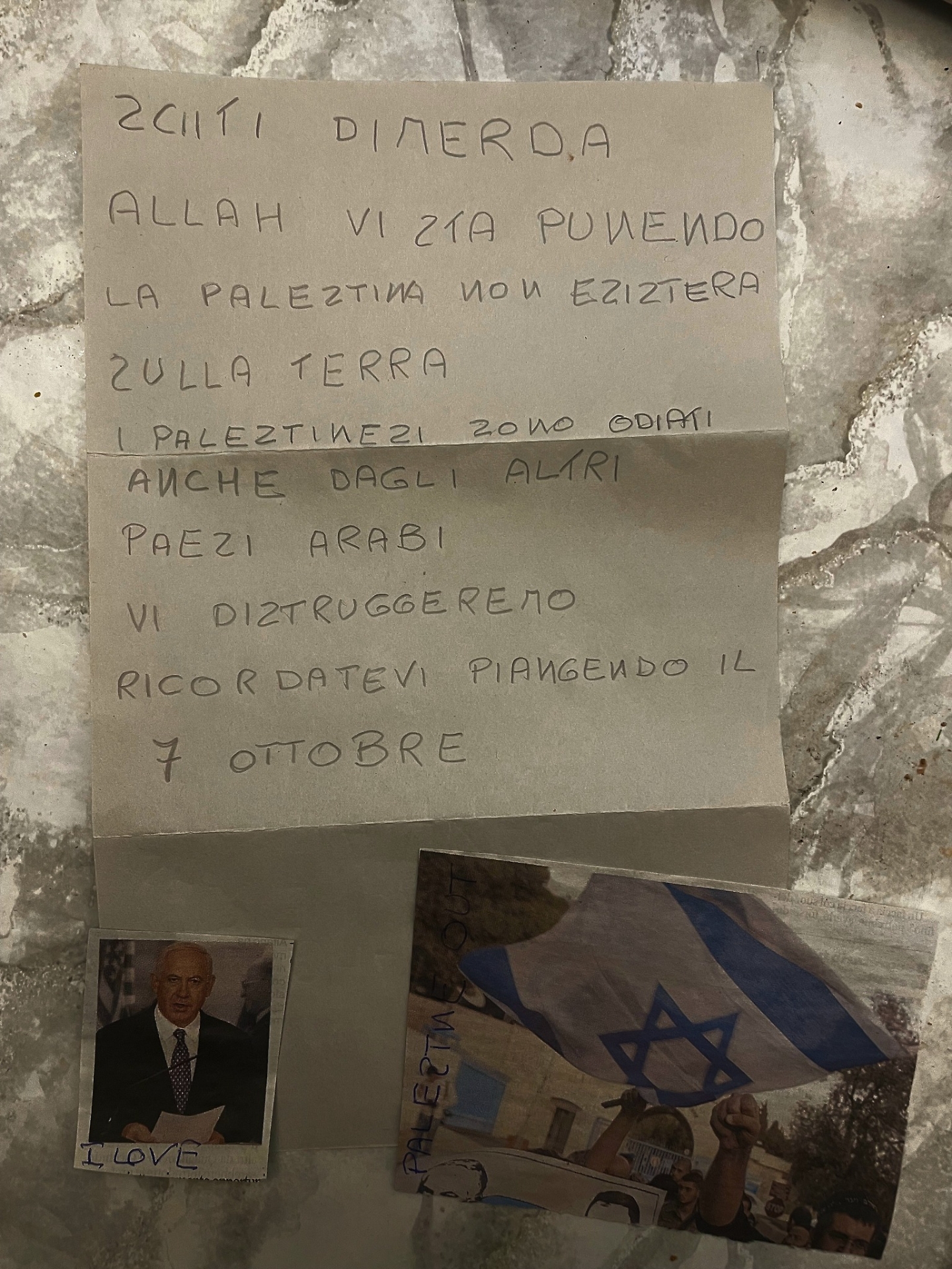 Una busta affrancata, infilata nella cassetta della posta come un messaggio avvelenato. Dentro, poche righe sgrammaticate, violente, intrise di odio religioso e razzismo: «Sciiti di merda... Allah vi sta punendo... vi distruggeremo... ricordatevi piangendo il 7 ottobre». Accanto, due fotografie incollate alla rinfusa, come a voler imprimere una minaccia simbolica. È accaduto davvero, qui, in Canavese, non in qualche periferia dimenticata. Una famiglia musulmana, marocchina, perfettamente integrata da trent’anni, con due figlie nate e cresciute in Italia, si è trovata a fare i conti con un razzismo che pensava appartenesse al passato.