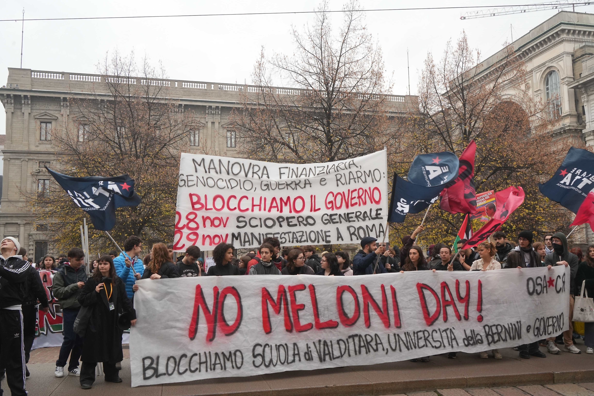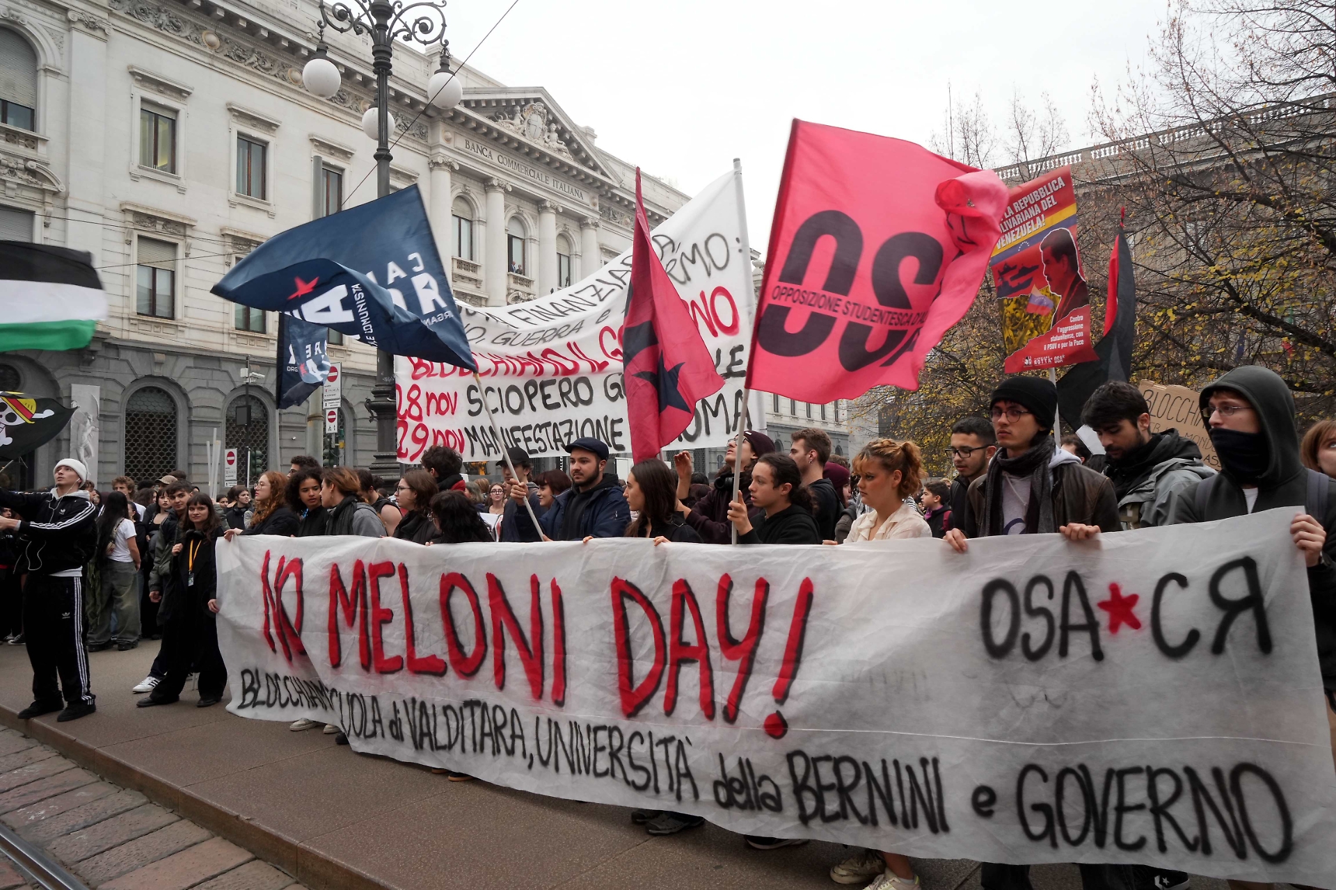 Striscioni, flash mob, sit-in, slogan contro il governo e contro il ministro dell’Istruzione Giuseppe Valditara hanno segnato un lungo venerdì di cortei che, in più città, è sfociato in scontri e tensioni con le forze dell’ordine. I manifestanti hanno incrociato le ragioni del cosiddetto No Meloni Day con quelle dei Fridays for Future, mescolando protesta sociale, critica al governo e solidarietà alla causa palestinese.