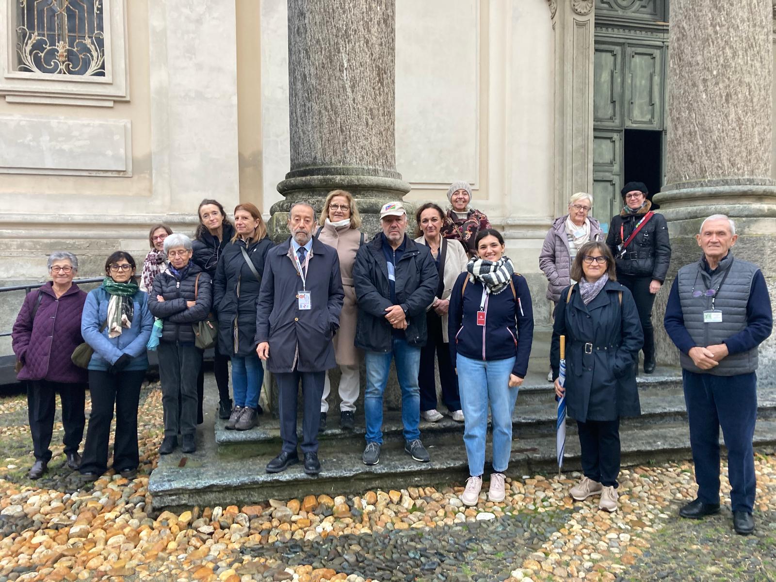 Nel pomeriggio, il gruppo ha raggiunto l’abbazia di Fruttuaria a San Benigno Canavese, di cui Guglielmo fu il fondatore. Qui, grazie alla disponibilità della Soprintendenza ai Beni Culturali e alla collaborazione degli Amici di Fruttuaria, è stato possibile ammirare gli splendidi mosaici che ancora oggi testimoniano l’importanza del complesso monastico. Lungo il percorso, grazie alla pasticceria Papillon, hanno degustato la loro specialità “la Volpianina”.