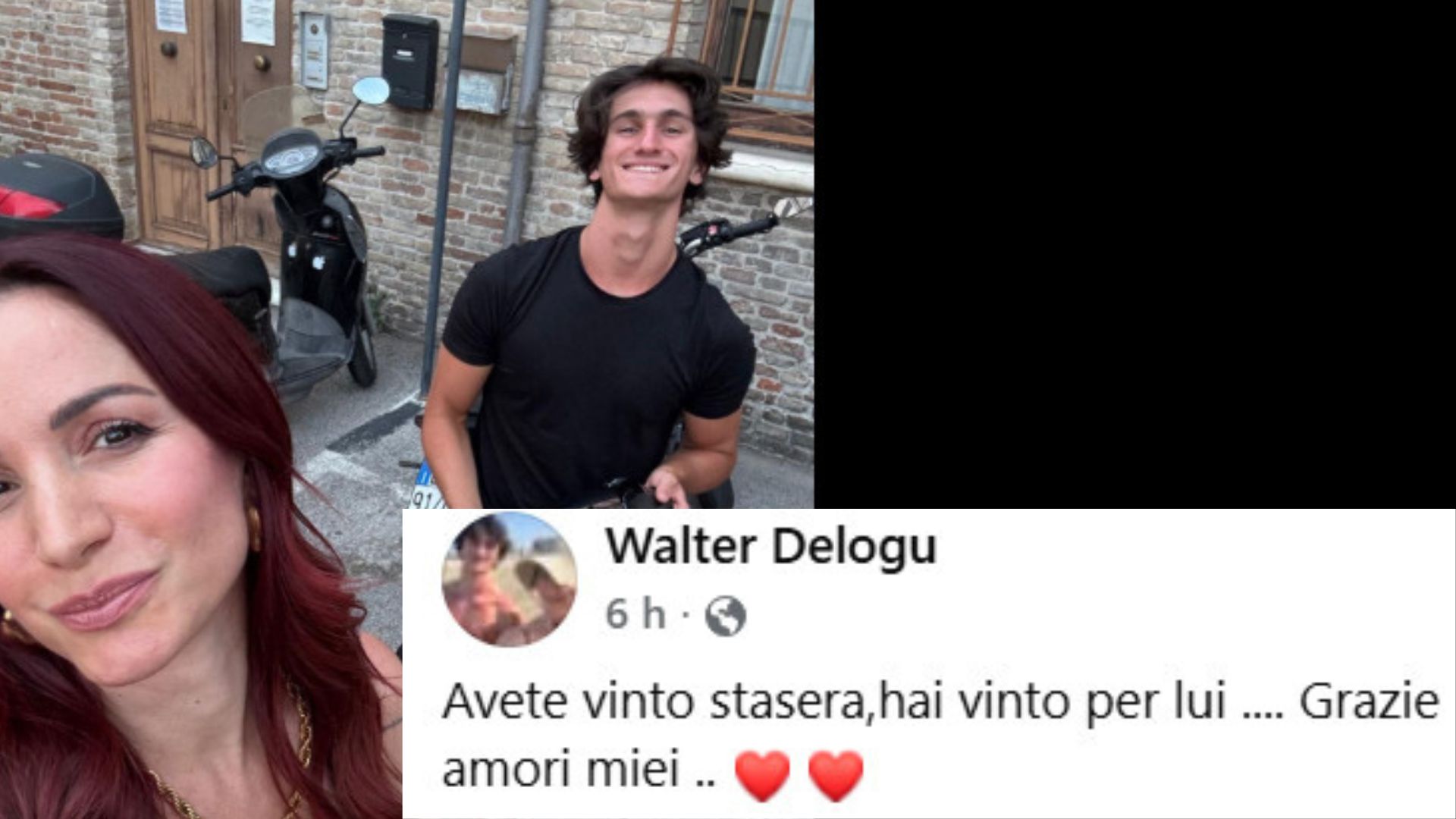 Ma il momento più intenso è arrivato sui social, dove il padre, Walter Delogu, ha voluto dedicare alla figlia un gesto semplice e gigantesco allo stesso tempo. Dopo l’esibizione, ha pubblicato su Facebook una foto di Andrea ed Evan insieme durante una passeggiata, scrivendo: «Avete vinto stasera, hai vinto per lui... Grazie amori miei». Un messaggio breve, diretto, che ha raccolto migliaia di reazioni.