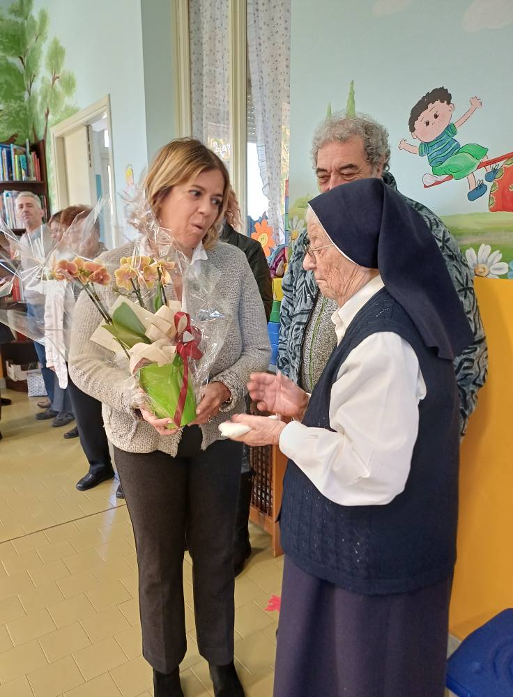 La religiosa, appartenente alla congregazione delle Suore di Loreto, è da decenni un punto di riferimento discreto ma essenziale. Il suo servizio silenzioso e costante, il suo modo di sostenere la scuola con gesti semplici e pieni di cura, hanno lasciato un’impronta profonda nell’ambiente educativo e nella comunità ciriacese. Per questo, la celebrazione è stata vissuta come un momento autentico di riconoscenza collettiva.