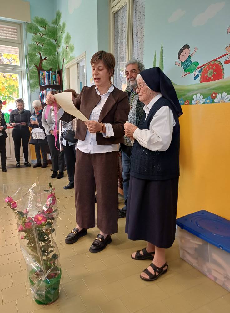Il cortile dell’istituto si è riempito del canto dei bambini, che hanno voluto rendere omaggio alla suora con un augurio corale preparato insieme alle famiglie. «GRAZIE ai bimbi (e alle famiglie) per gli auguri cantati all’unisono», ha aggiunto Bayma, ricordando il ruolo fondamentale che genitori e figli svolgono ogni giorno nel tenere viva l’identità della scuola.