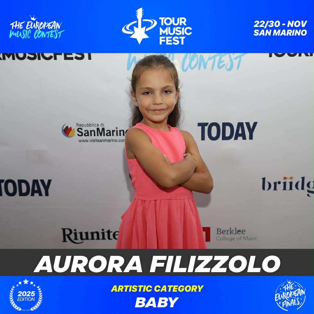 Aurora Filizzolo porta l’Italia sul palco della finale europea del Tour Music Fest 2025, categoria Baby Junior
