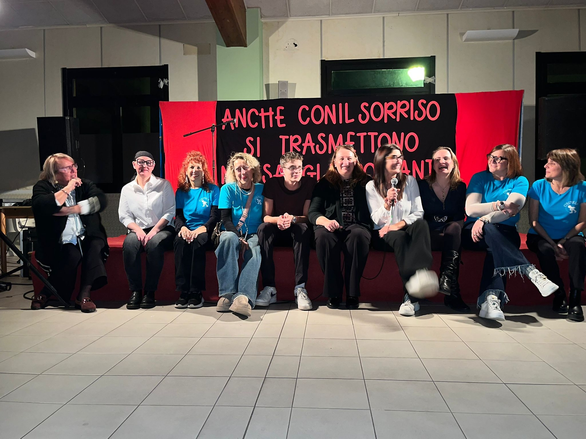 L’iniziativa si è aperta con una cena particolarmente ricca, descritta da più partecipanti come “da matrimonio”, mentre un’animatrice intratteneva i bambini e gli adulti si preparavano allo spettacolo. Prima dell’intervento della comica, la presidente dell’associazione promotrice, Monica Gattero, ha ricordato il legame tra la serata e la ricorrenza del 25 novembre, sottolineando come il lavoro dell’associazione punti a coinvolgere non solo le donne ma anche gli uomini, unendo satira e informazione.