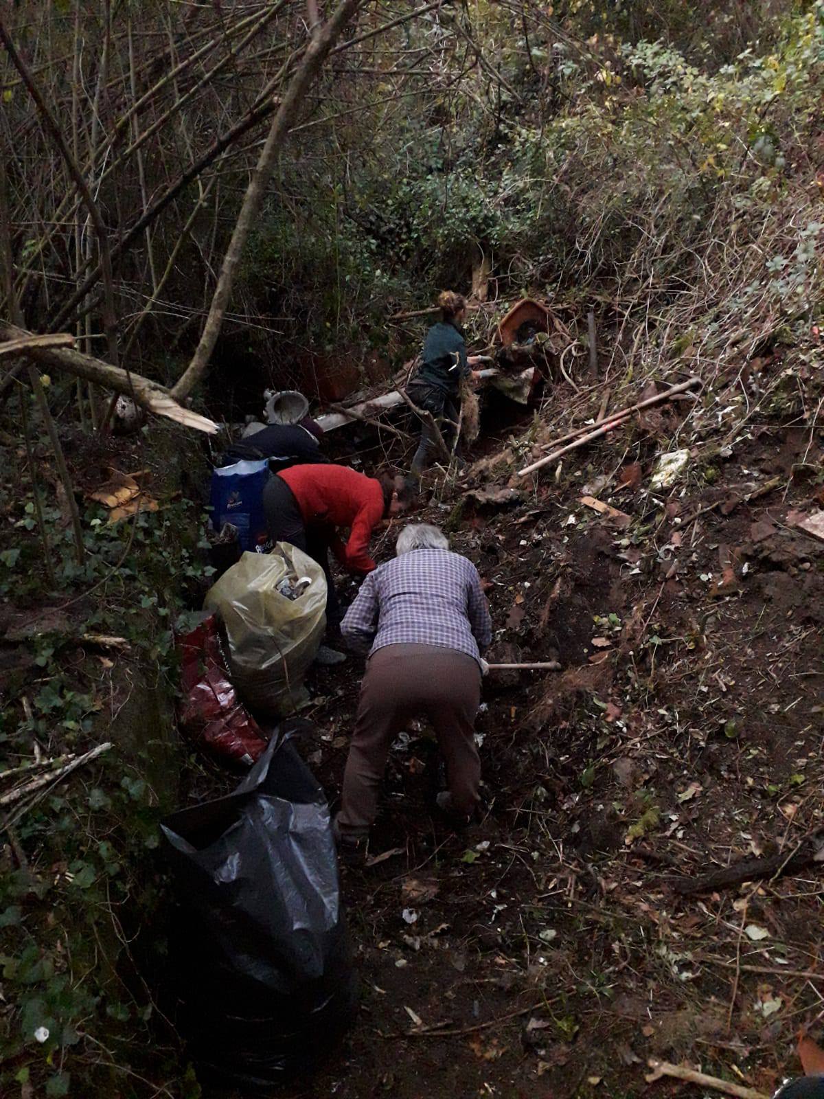 I volontari scattano foto, catalogano, raccolgono sacchi, caricano camioncini arrugginiti, trascinano lamiere, copertoni, ferraglia, sedie da giardino, rottami di ogni epoca. In mezzo ai rovi riaffiorano stratificazioni di rifiuti: la natura li ha ricoperti, ma non cancellati. Li ha nascosti sotto le foglie, avvolti nelle radici, spinti nei calanchi. Loro, però, restano lì.