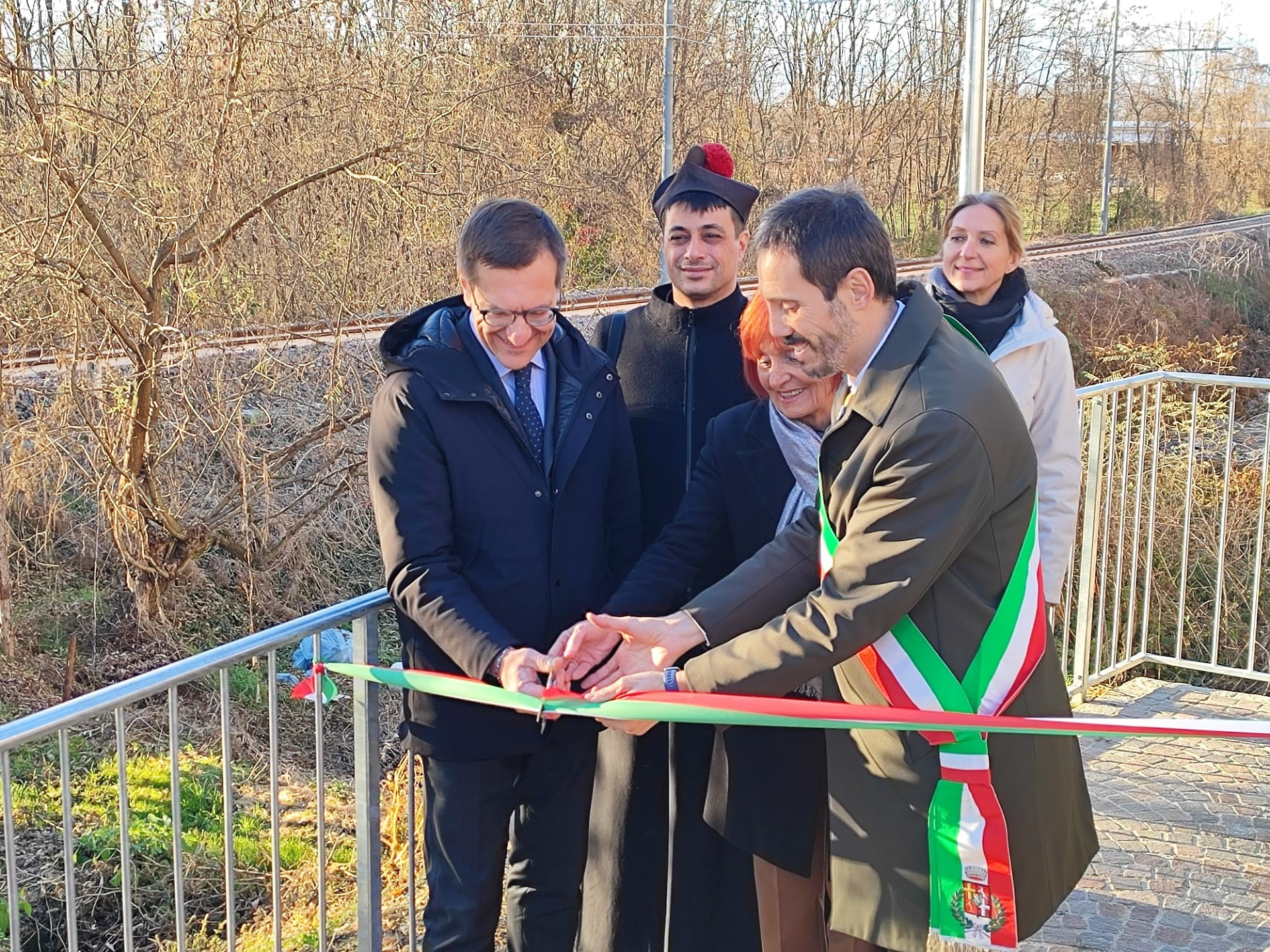 A San Benigno Canavese è stato inaugurato, giovedì 27 novembre, il nuovo tratto di collegamento ciclopedonale “Salita Giorgio Enrico Culasso”, un’opera pensata per migliorare l’accessibilità al Ricetto e al complesso abbaziale di Fruttuaria e favorire una mobilità più sostenibile e sicura.